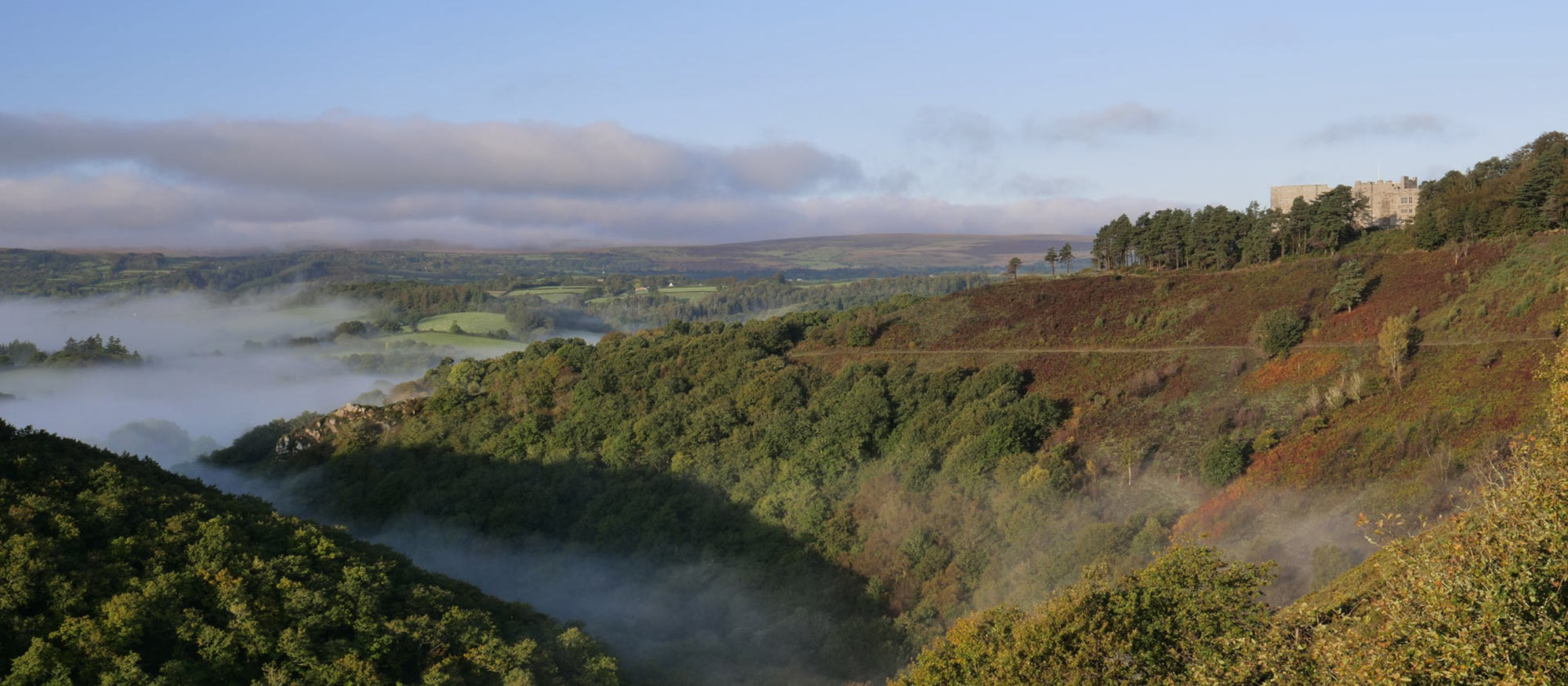 A castle overlooking the Teign Gorge.