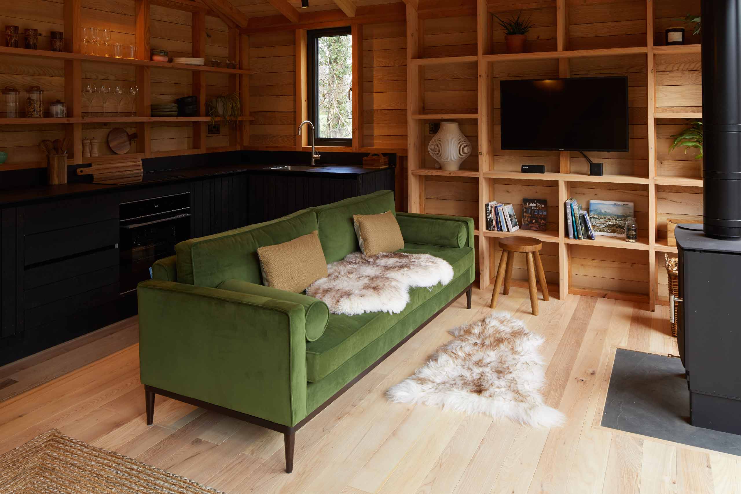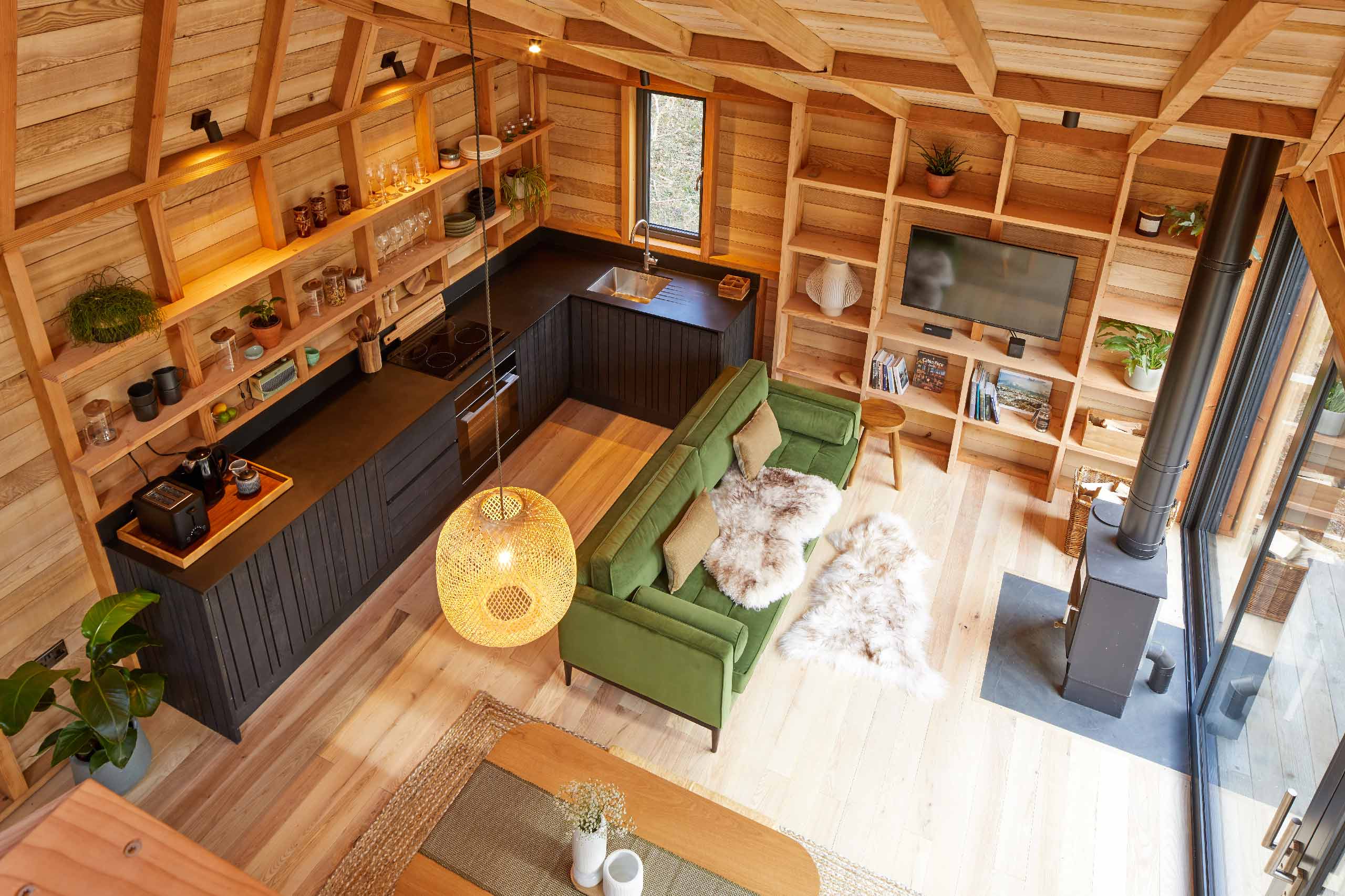 Whether it’s enjoying the views and birdsong over a morning coffee or stargazing from the comfort of your mezzanine bed, you’ll find everything you need in the cabin.